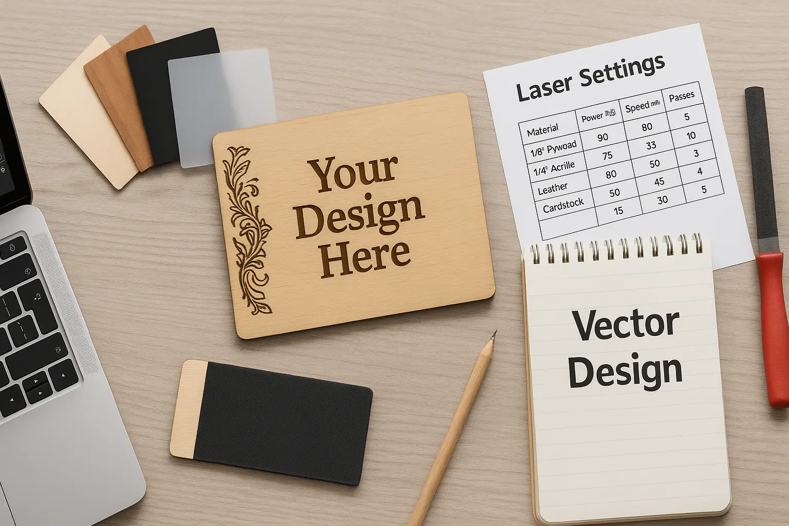 - Choose your material - Different materials require specific power levels and speeds. Wood, acrylic, and leather are especially popular because they cut cleanly and look great engraved.