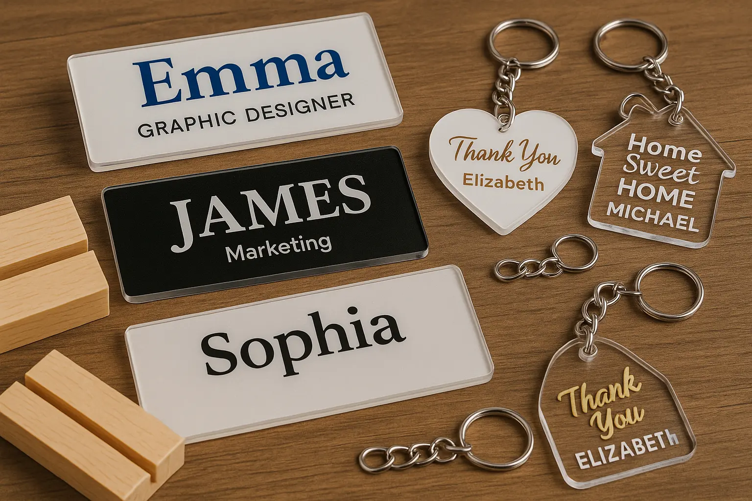 • Custom keychains and tags