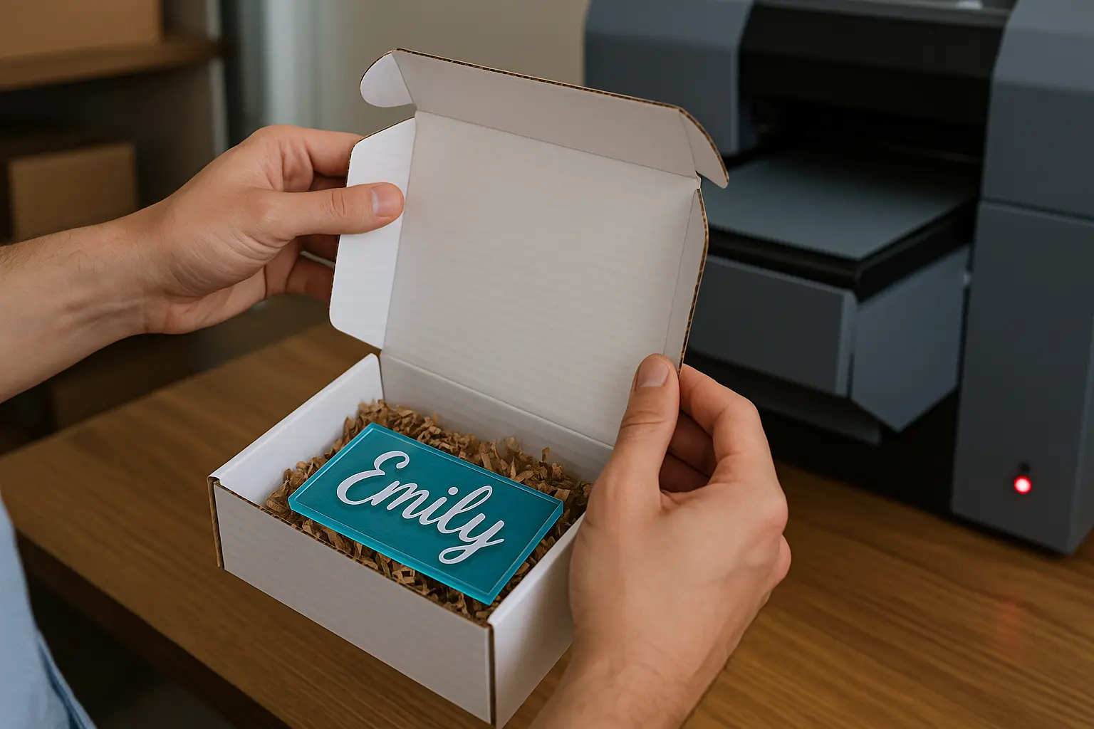 A store offering custom acrylic nameplates can print, pack, and ship within 24 hours — giving them an edge over competitors who take a week.